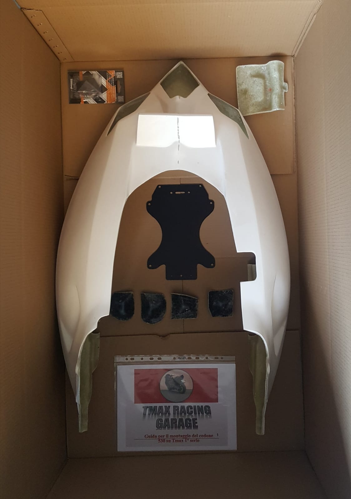 Questa tipologia di modifica è applicabile solamente a tutti i T Max 500 dall’anno 2001 fino al 2007, è realizzata in vetroresina 100% made in Italy.