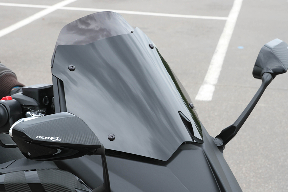 E’ una vera soluzione innovativa, un compromesso perfetto vista la possibilità di regolarlo a due altezze differenti, quella più classica, ideale in caso di pioggia o per la città e quella più corta e più sportiva, più adatta in autostrada.