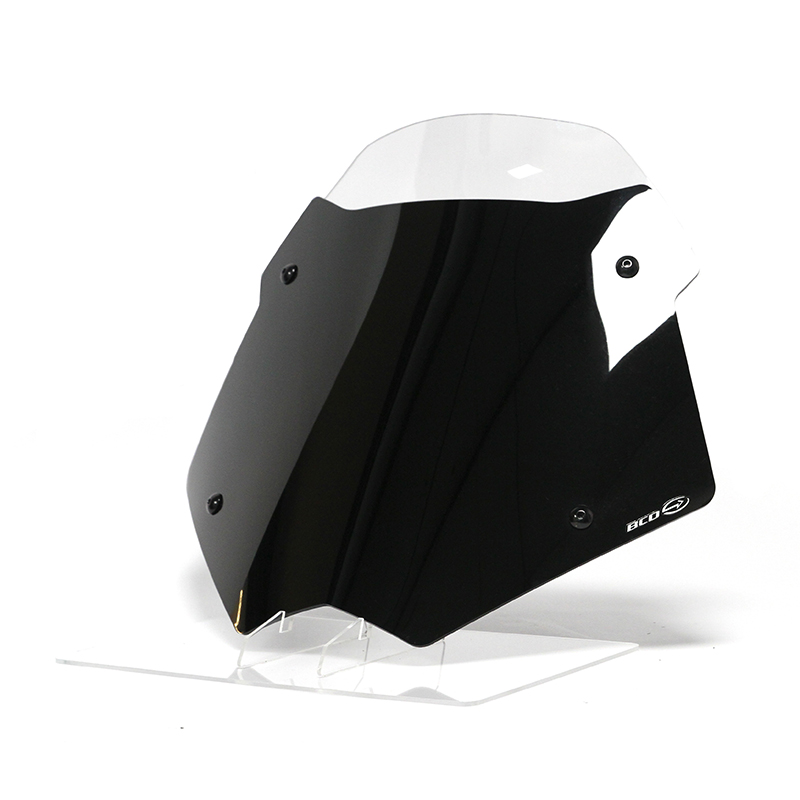 E’ disponibile in due versioni, trasparente o fumè, come dicevamo prima il conducente ha la possibilità di regolarne l’altezza, la misura di escursione è di 6 centimetri.