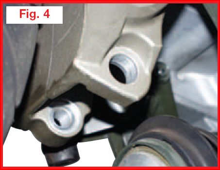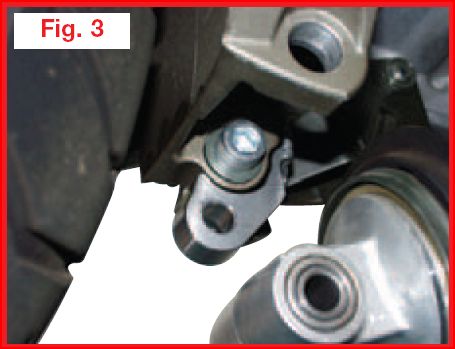 - Inserire la vite M12X40 con la rondella originale nel supporto sinistro del forcellone (Fig. 2).