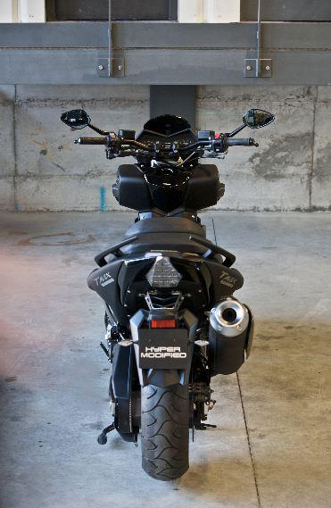 Il tutto è stato sostituito montando la forcella il faro ed il cupolino della Yamaha FZ8 mentre il posteriore è rimasto invariato come tutti gli altri modelli di T Max.