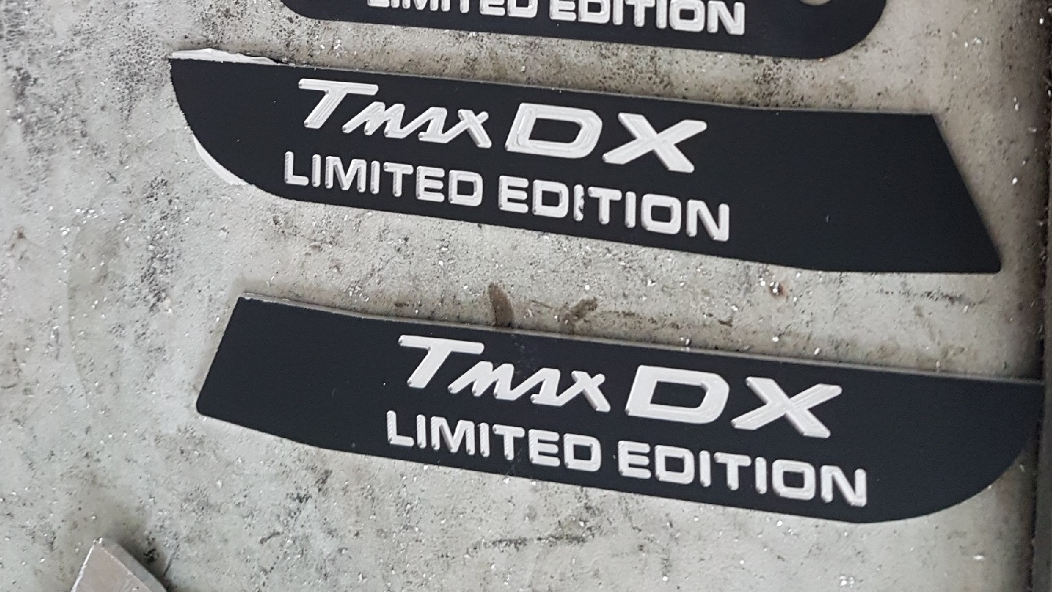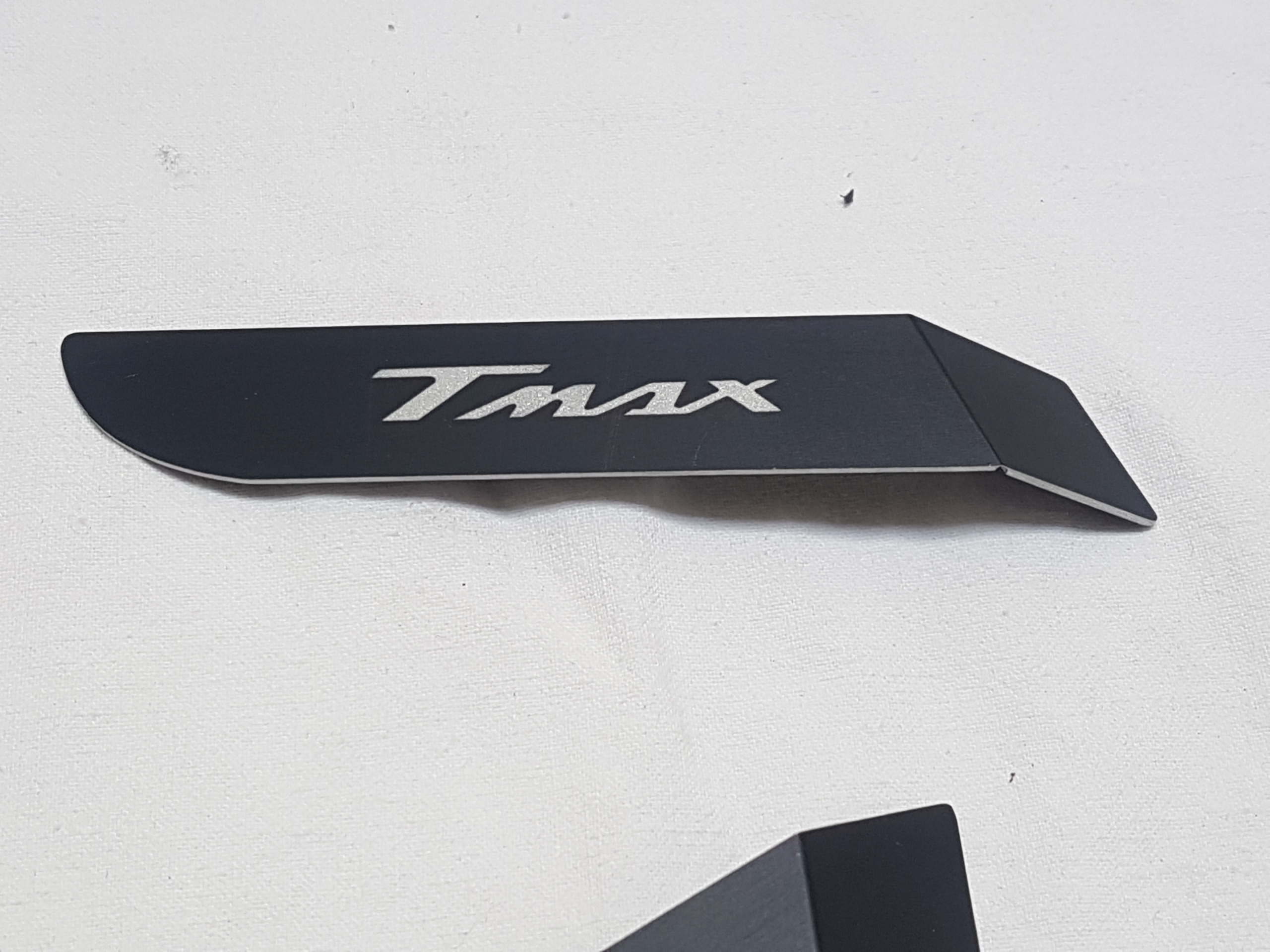 In alluminio Anodizzato e sono compatibili con il T Max 530 modello base 2017/2020 che non ha di fabbrica le targhette.