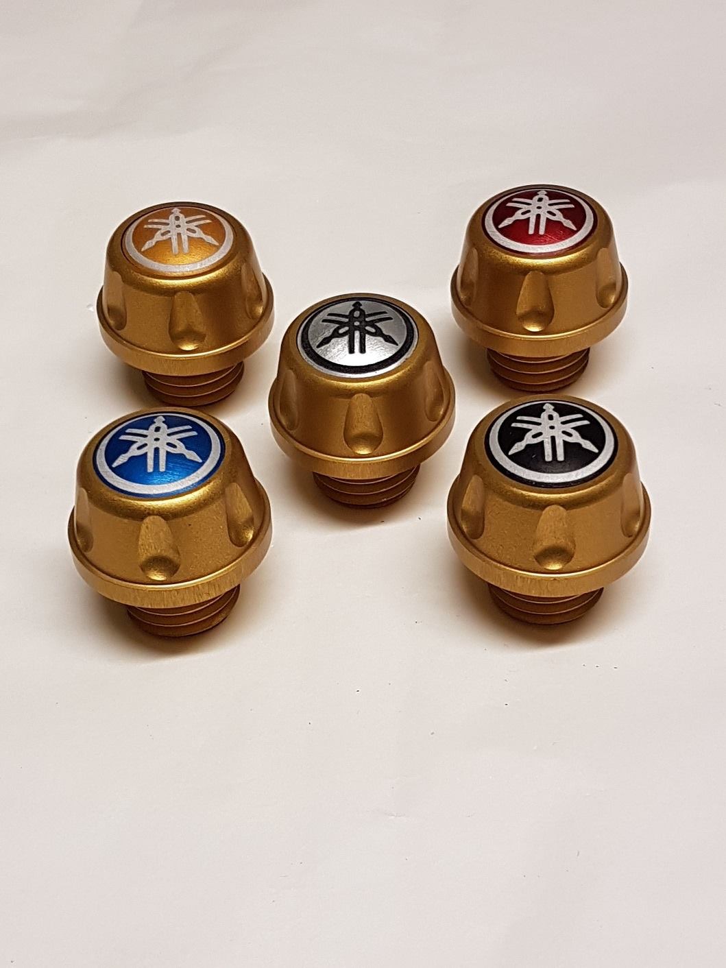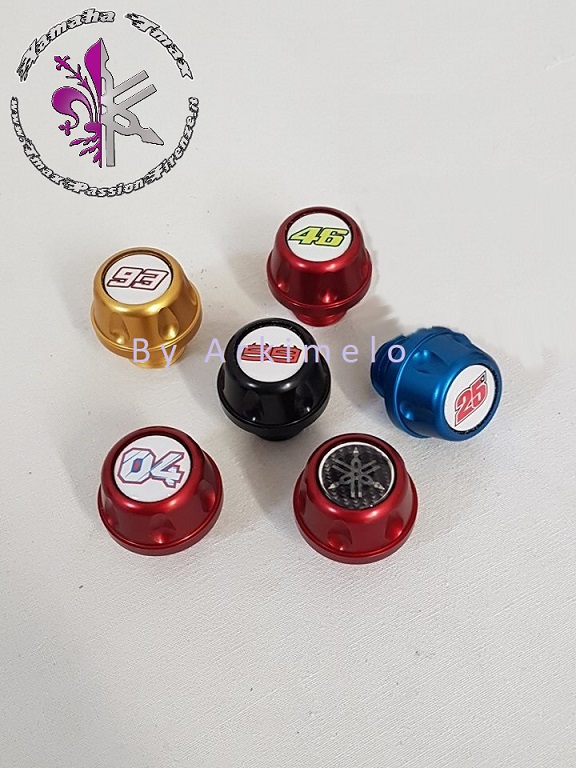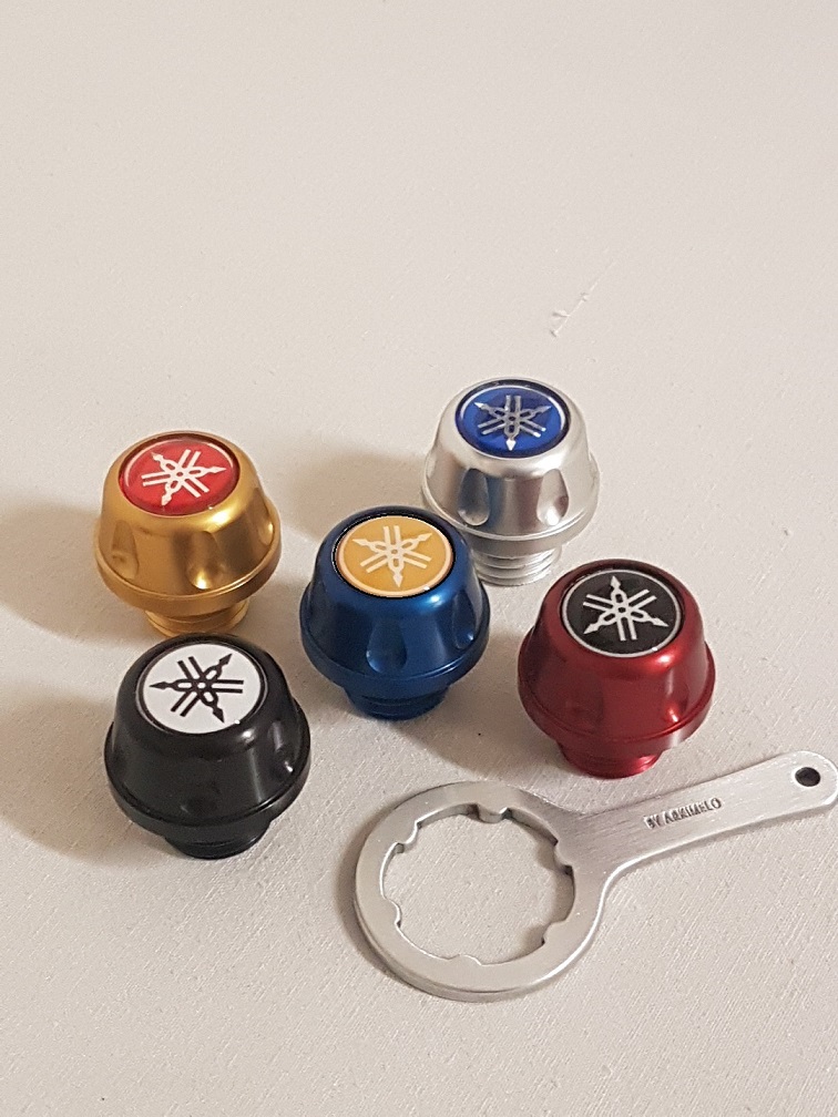 Per T Max 500 e 530 realizzati in alluminio anodizzato, 5 colori per il tappo e per il logo Yamaha che potete abbinare fra di loro oppure scegliere il vostro pilota preferito.